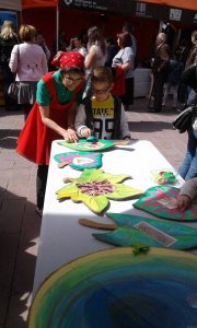 El día Domingo 23 de abril en el marco de la celebración de Sant Jordi realizamos el segundo taller “El camí de las granotes” en la plaza del Ayuntamiento del municipio de Sant Boi de Llobregat, junto con las entidades de cooperación. La jornada se realizó de manera exitosa ya que contó con la participación de casi 40 personas, en total se realizaron 4 talleres en cada uno participaban niños y niñas, junto con la compañía de sus padres que demostraron sus habilidades en papiroflexia y el posterior conversatorio con ellos sobre el tema. Fue una jornada muy especial ver nuestras “granotes” saltando entre libros y rosas. Compartiendo el mensaje de que debemos cuidar nuestro planeta y no olvidar que es limitado y que por tanto debemos ser responsables de cuidarlo y respetarlo, y trabajar juntos para cuidar de nuestro mundo.